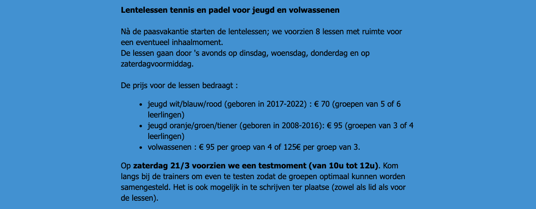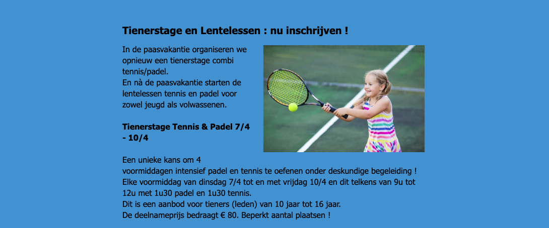 TENNISLESSEN :: PADELLESSEN :: Tennis stages & Padel stages !!
