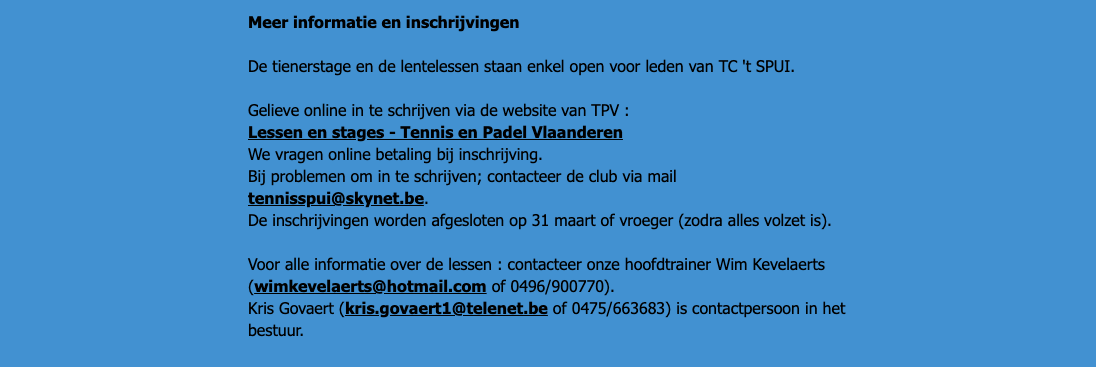 Tennis & Padel Club 't Spui :: Predikherenlaan 18c - 2500 Lier > Locatie Google Maps